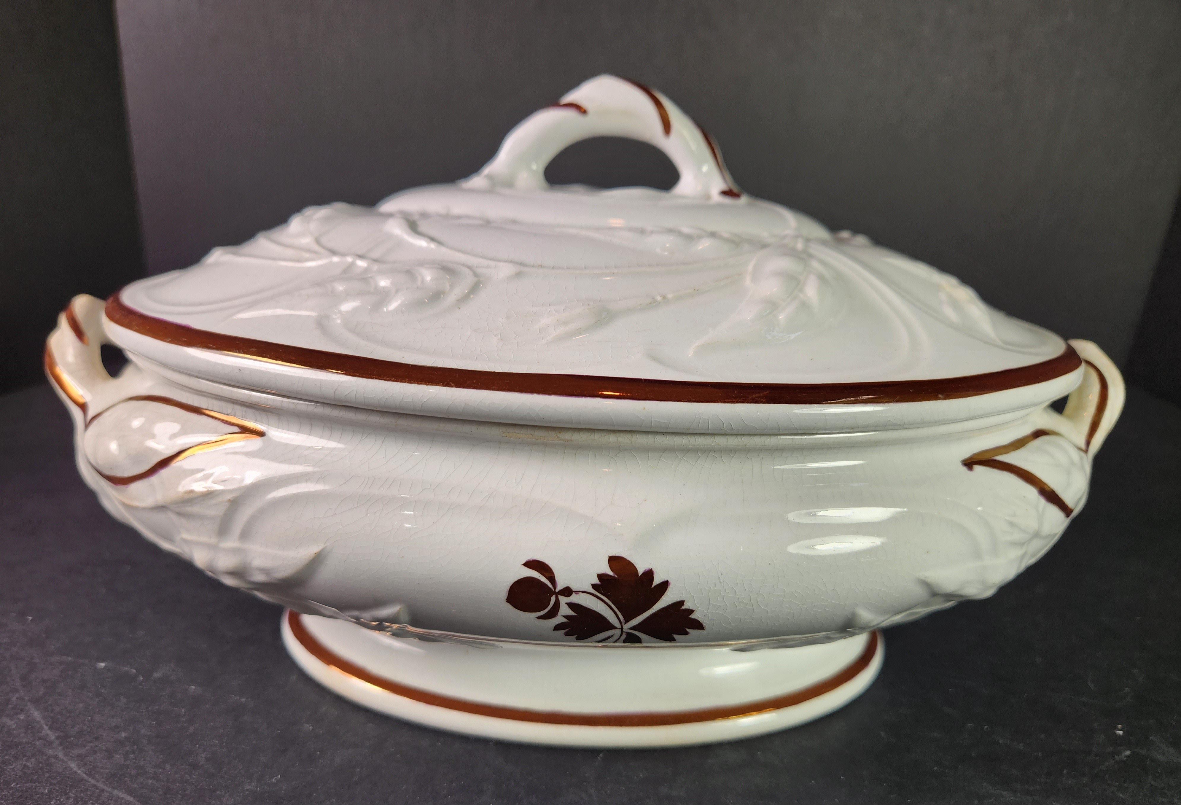 A lovely vegetable tureen with high embossing.