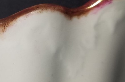 Johnson Brothers' elaborate Acanthus features embossed elongated leaves. Even flatware pieces such as ordinary plates and bowls are decorated with triangular shaped leaves on the rim border. Holloware pieces such as the ewer and the sugar bowl have deeply ruffled melon ribs. This body style is sometimes confused with Chelsea.