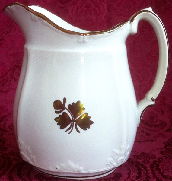 A creamer decorated with copper lustre with brocade-like embossing.