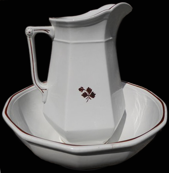 A ewer and basin in the Bullet shape. Note that the basin is also sided rather than round.