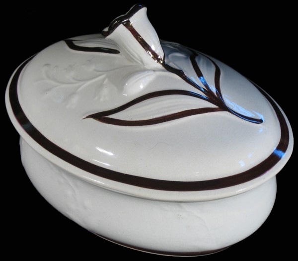 A gorgeous embossed lily graces the lid of this soap box. A soap box may have an inside liner for drainage.