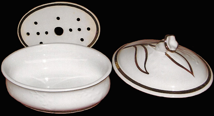 A complete Lily-of-the-Valley soap dish including the drainer.