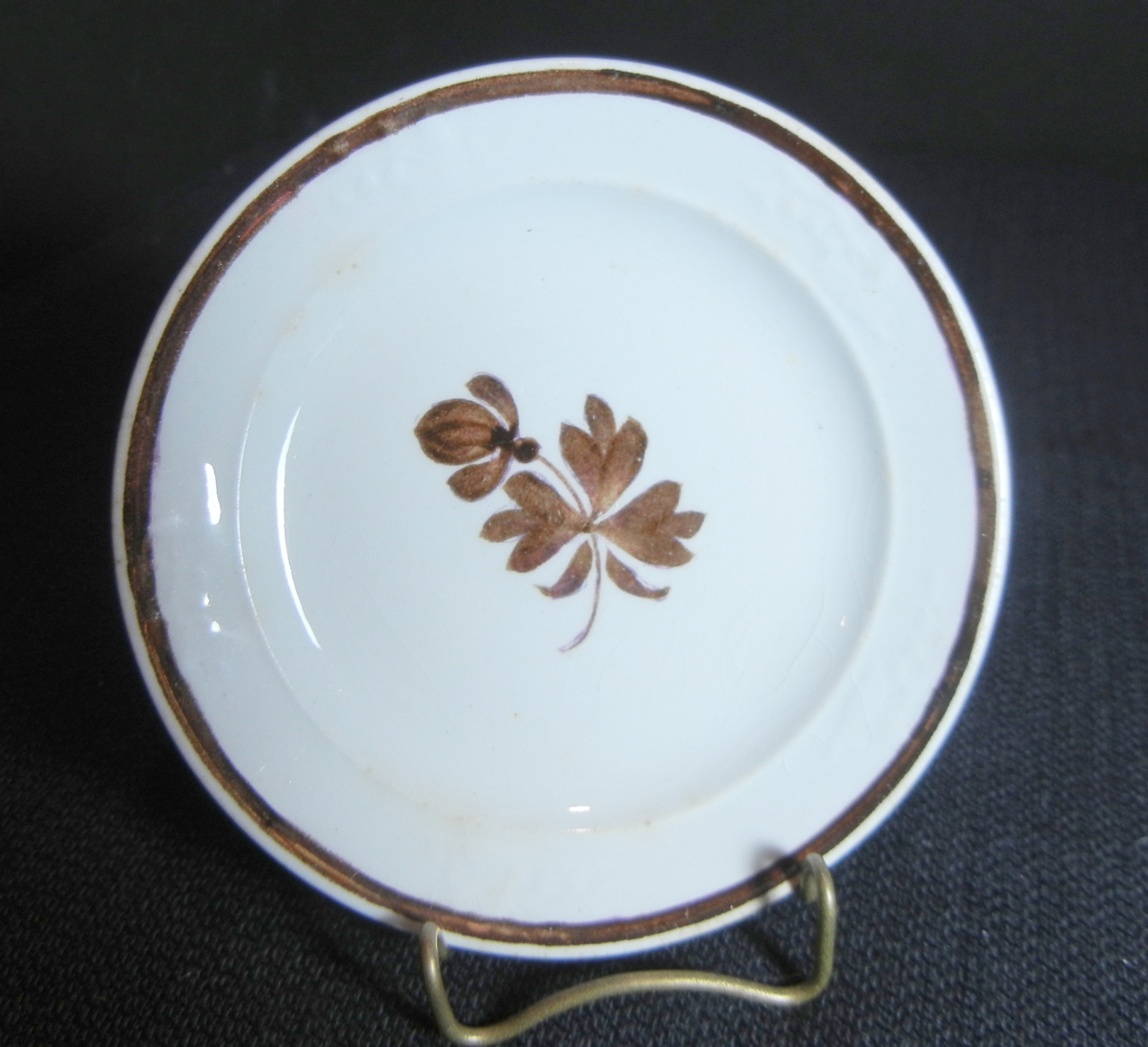 A small cup plate decorated with Lily-of-the-Valley embossing. Hot beverages were poured into cup plates to be cooled before consuming.